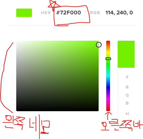 왼쪽 네모에서 원하시는 색깔을 고르시면 됩니다.
