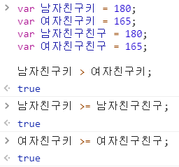 남자친구의 키가 180으로 여자친구의 키보다 크기 때문에 True가 되는 것이고,