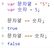 -> 자료형 유형과 상관없이 서로 다른 두 값이 엄격히 같은지 비교할 때