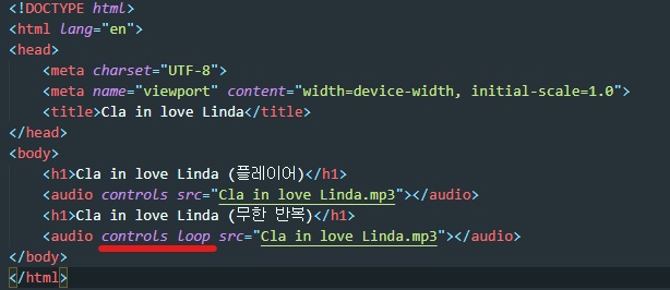 controls를 추가한 이유는 loop의 경우 음악이 재생된 후 그 음악이 끝나야 반복이 될 수 있는데,
