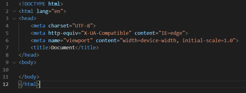 위의 사진은 Visual Studio Code를 이용해 작성한 HTML의 기본 틀입니다.