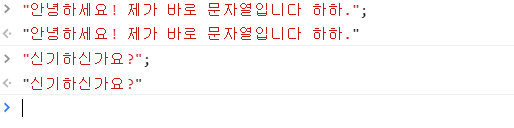 자바스크립트에서 문자열 자료형을 출력하면 다음과 같은 형태로 출력됩니다.